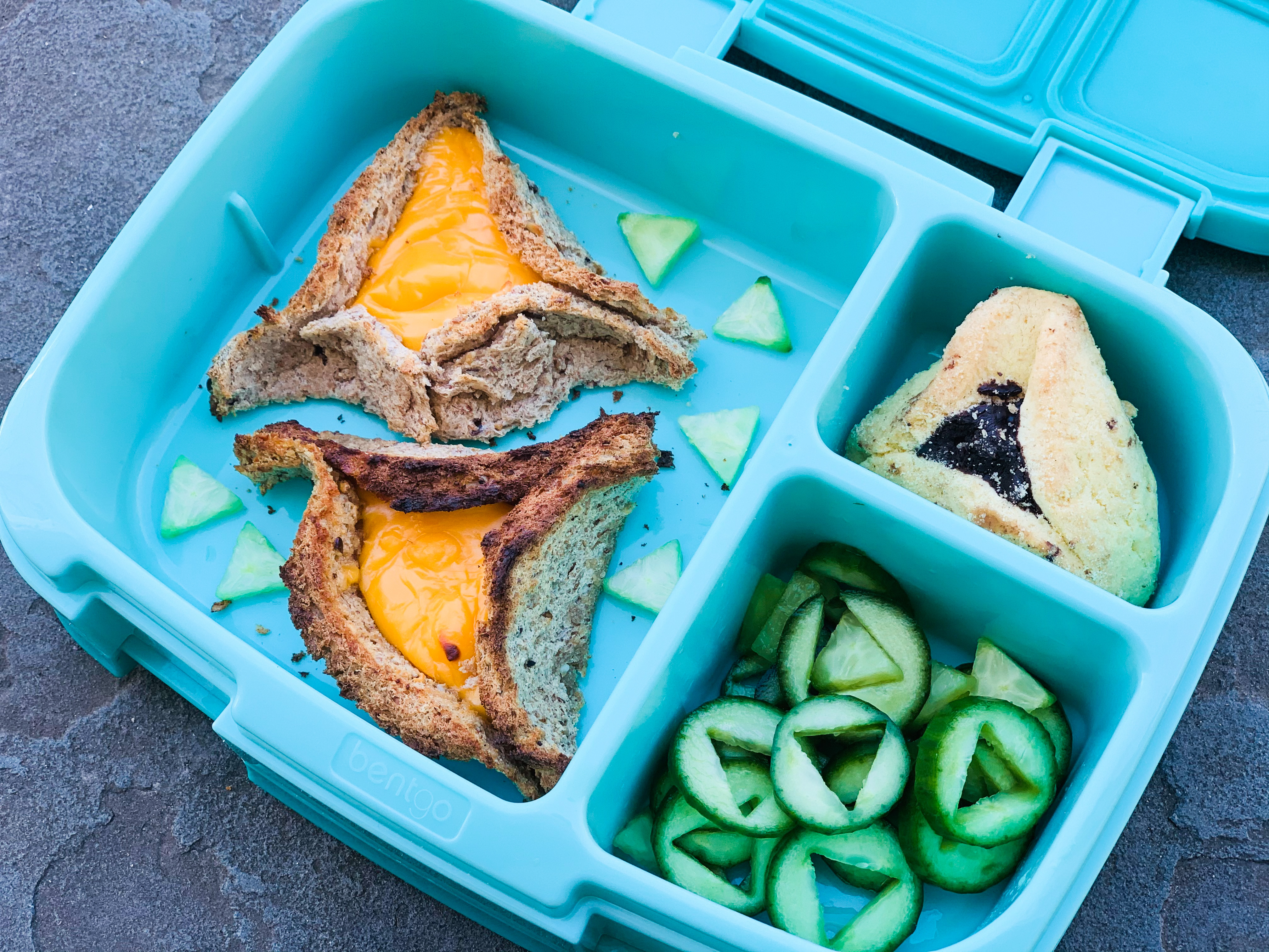 🍪 For dessert, the kids had a chocolate hamantash cookie (check out our recipe for Chocolate Caramel Hamantaschen from yesterday!)